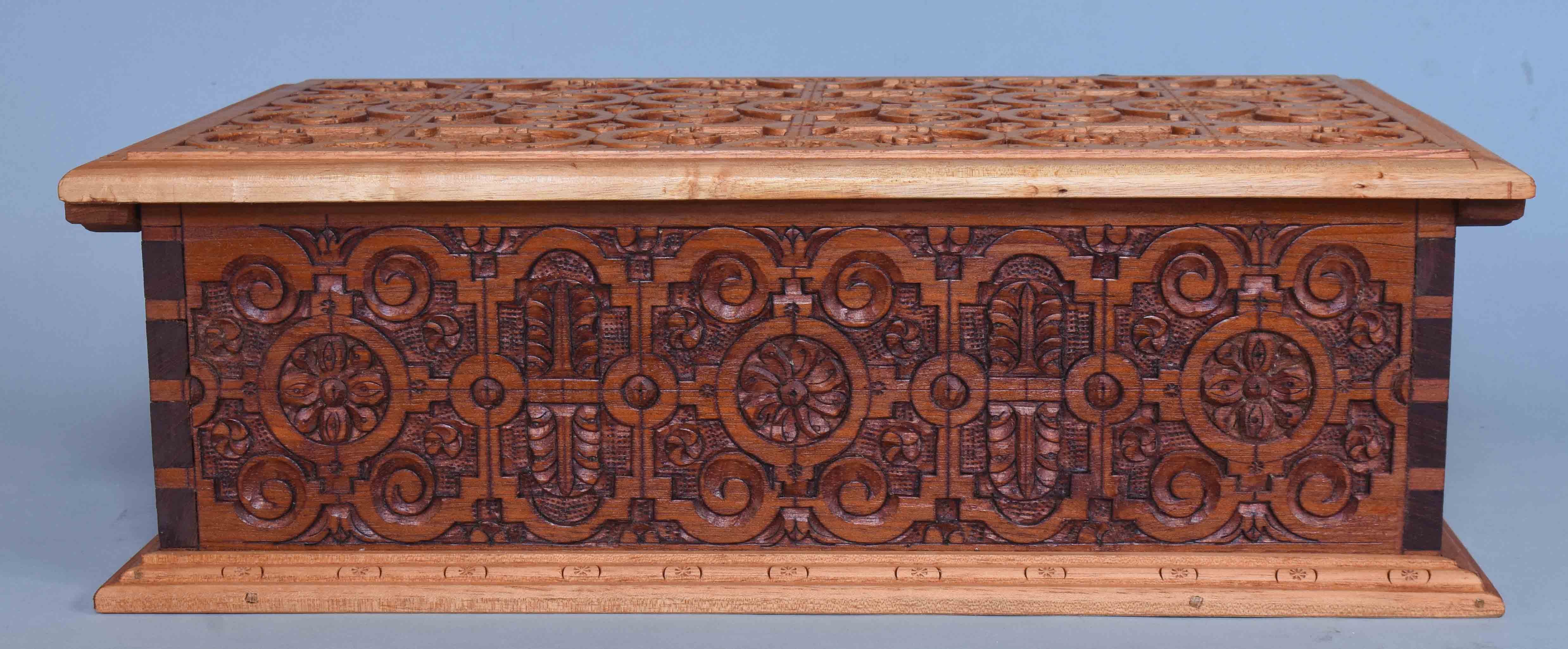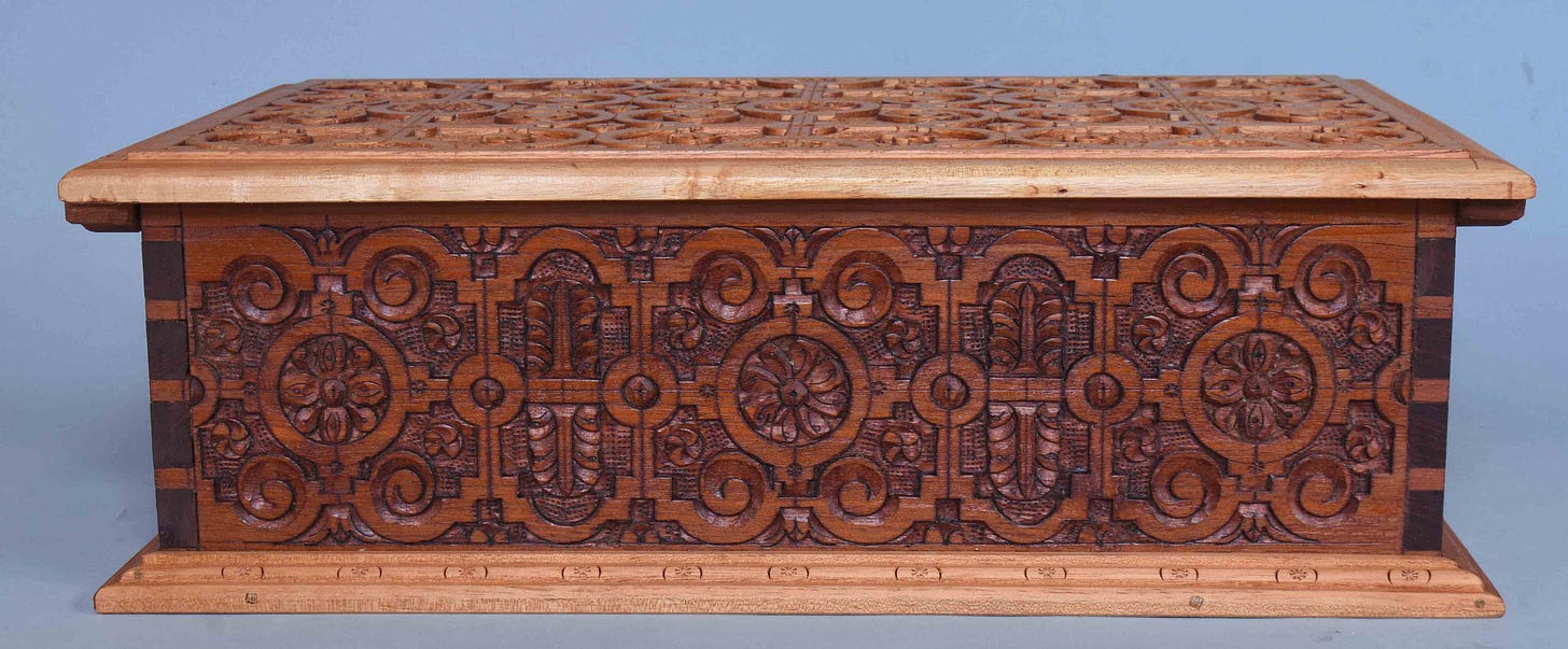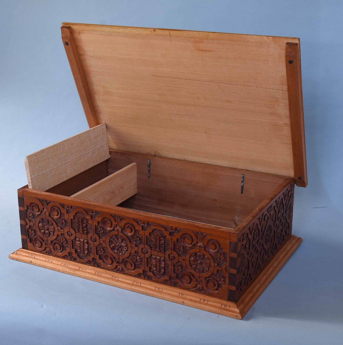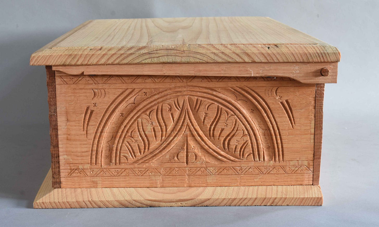 I’ve made several carved boxes in the past couple of months – and now they’re ready to wend their way out of here. This first one is an old-standby.
